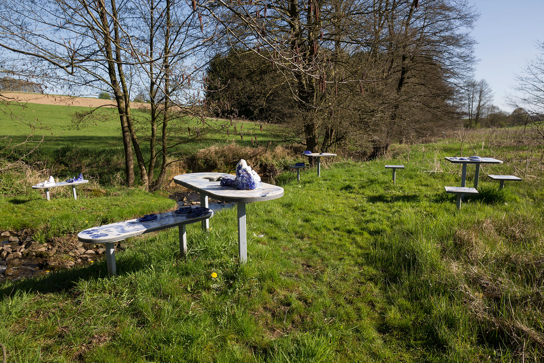 … gestalten etwa 50 Künstler, Landschaftsarchitekten, Bildhauer, Schriftsteller, und Musiker den Landschaftsraum ›im Tal‹ zwischen Hasselbach und Werkhausen. Dabei nutzen sie umgestaltend die landschaftlichen Gegebenheiten, die geprägt sind von einem Bachlauf, Wiesen, Weiden und bewaldeten Flächen. Mäh- und andere Wege erschließen das Gelände von einer Größe über 100.000 qm, in das die ortsbezogenen vielgestaltigen Kunstwerke integriert wurden und so einen behutsamen Dialog mit der Landschaft suchen. Um eine Wirkungseinheit von Landschaft und Kunst zu finden, waren auch historische Gartenkünstler wie Friedrich Ludwig von Sckell (1750–1823) eine Orientierung.
