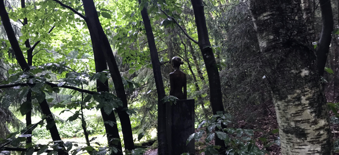 Inmitten der Natur, im Laubwald »im Tal«, begegnet man Lena. Einer jungen Frau mit entblößtem Oberkörper. Schlank mit knochigen Schultern, die Arme leicht nach hinten gedreht, mit straffen Brüsten und flachem Bauch steht sie da. Ihr langes Haar streng zu einem Knoten gebunden. Der Körper und der Kopf sind leicht nach links verschoben. Der Mund bleibt geschlossen, der Blick ist frontal ausgerichtet doch nicht fokussiert. Die Augenlieder sind gesenkt, wie im Halbschlaf oder in einem tranceartigen Zustand schaut Lena durch den Betrachtenden hindurch. Diese Regungslosigkeit des Blickes wird auch in ihrer Haltung reflektiert. Der Körper mündet an der Hüfte in einem aus Beton gegossenen dunklen Sockel der fest in der Erde verankert ist und der noch einmal mehr den Moment des stillen Erstarrens unterstreicht.