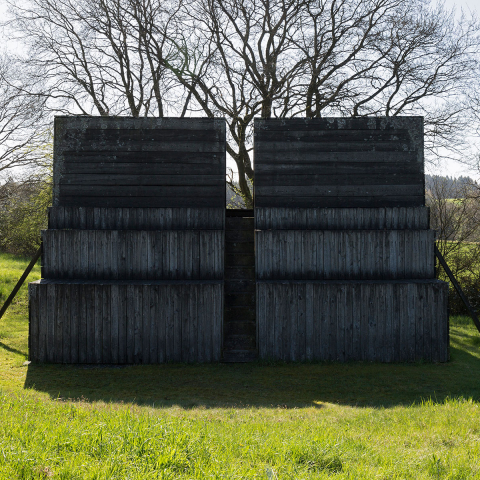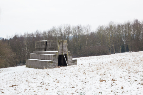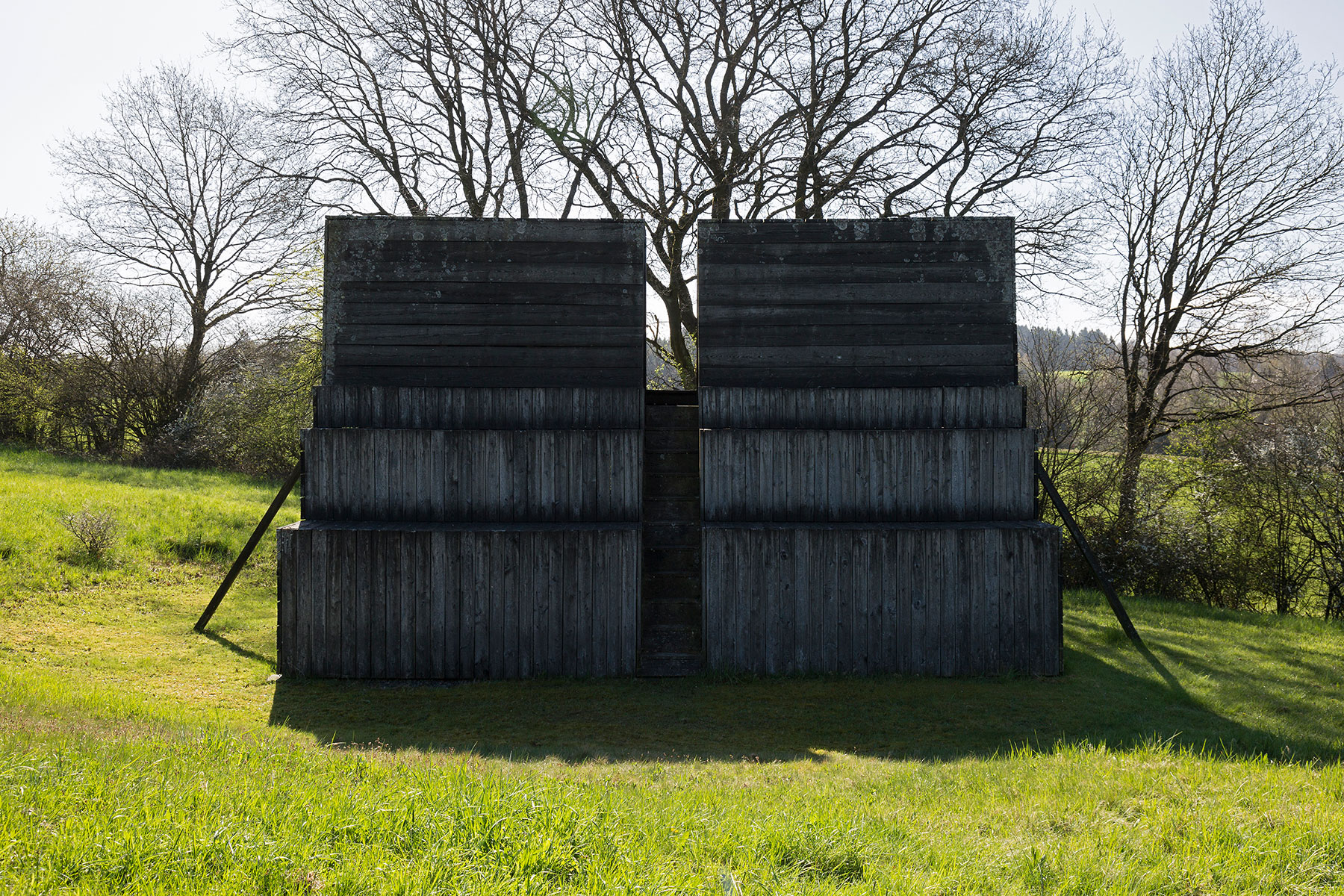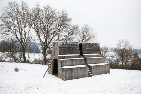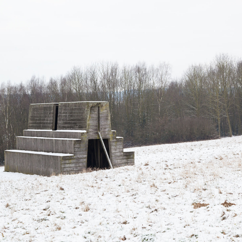 Wohlan ins ›Tal‹, rief Wortelkamp, nachdem das letzte Frühstücksmaul gewischt war. Jedem sollte, auf erstem Rundgang, von Senken und Hügeln, Bächen und Auen, Hecken und Röhricht, Fels und Baum und jeglicher Mischung, die begrifflichste Anschauung zuteil kommen. Und vielleicht gar, hoffte Wortelkamp, ein Ungeduldiger, würden schon Plätze erkoren und amöne Örter gefunden, woselbst die collegae in artibus ihre Wegzeichen und Votivbilder in die Natur, die diesen hellgrauen Nachmittag, leicht überschneit, sich plastisch darbot, möchten setzen wollen. Bei diesen Gedanken hatte Wortelkamp den Bury, der es nicht merkte, scharf im Blick. Der rief, wie auf Kommando, eine leichte Erhebung vor Augen: »Dorthin, fürs ›Tal‹, bau ich einen Pferdestall!«