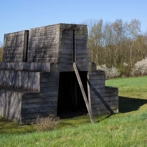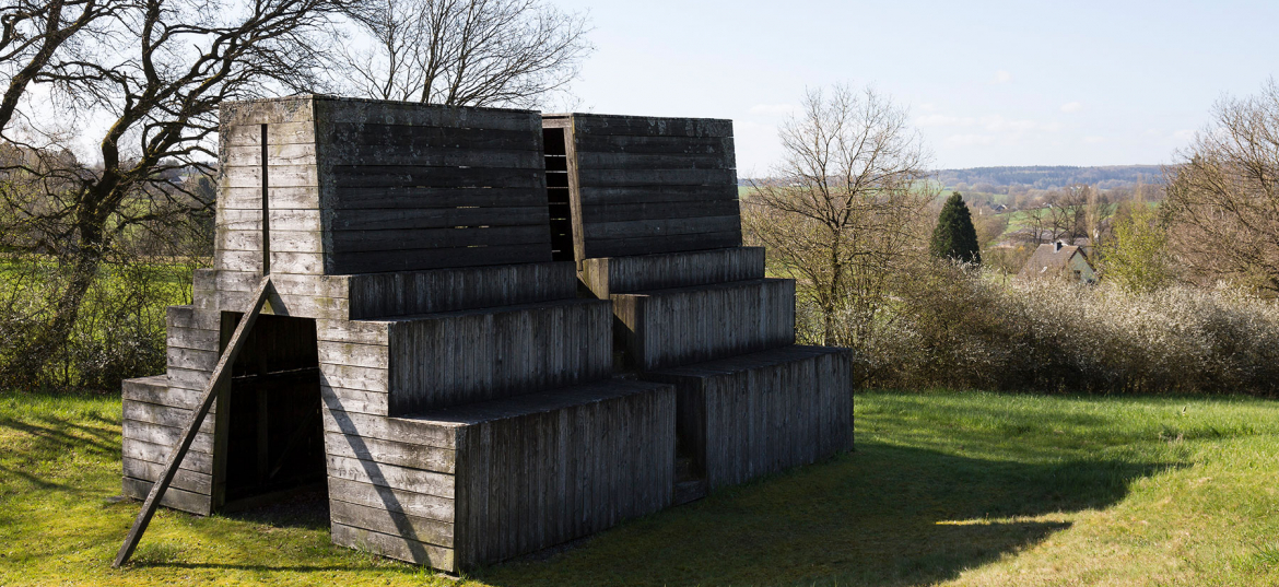 Alle wußten, warum der Hanauer ihnen so praktisch kam. Hatten sie doch nächtens die gepferchten Gäule treten und kollern gehört; denen mußte schnell eine Bleibe her. Noch länger wäre schließlich der berittenen Künstler Aufenthalt im ›Tal‹. Schon hatte Wortelkamp ein kleines Kiefernwäldchen im Blick und die nötigen Äxte und Sägen im Sinn, gab jeder das Seine krittelnd oder zustimmend dazu. Bury aber, den Kopf schon voller Grundrisse, Hochbalken und Pfetten, hielt mitten im Lauf zum Bauplatz jäh inne. Knapp dahinter, unter einem dichten Vorhang aus Efeu, trat ein Gebäunis in Erscheinung, das er in einer Vision eben auf den Platz gestellt hatte. Nun sahen es auch die anderen durch den grünen Mantel der Natur. Ein Holzhaus, getreppt und getürmt, mehr verschlossen als offen, zwei Stege stützten die Stirnseiten noch einmal ab: aus anderer Kultur dahergesetzt, aber wann? Sie schlugen es frei, rissen sich die Nägel ab. Dann war allen klar, Bury als erstem: sie alle waren schon einmal hier gewesen, vor Jahrhunderten. Bury holte den Rappen, stapfte durch den neuen Schnee und führte den Gaul an einen pferdekopfhohen Balken in dem Stalle, den er (er?) vielleicht vor dreihundert Jahren hier errichtet hatte. Der Pferdebiß an der alten Nagespur paßte.