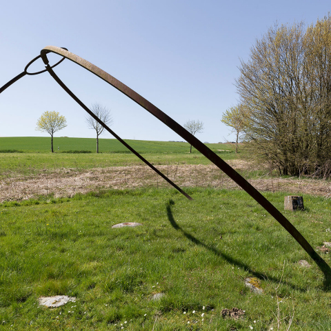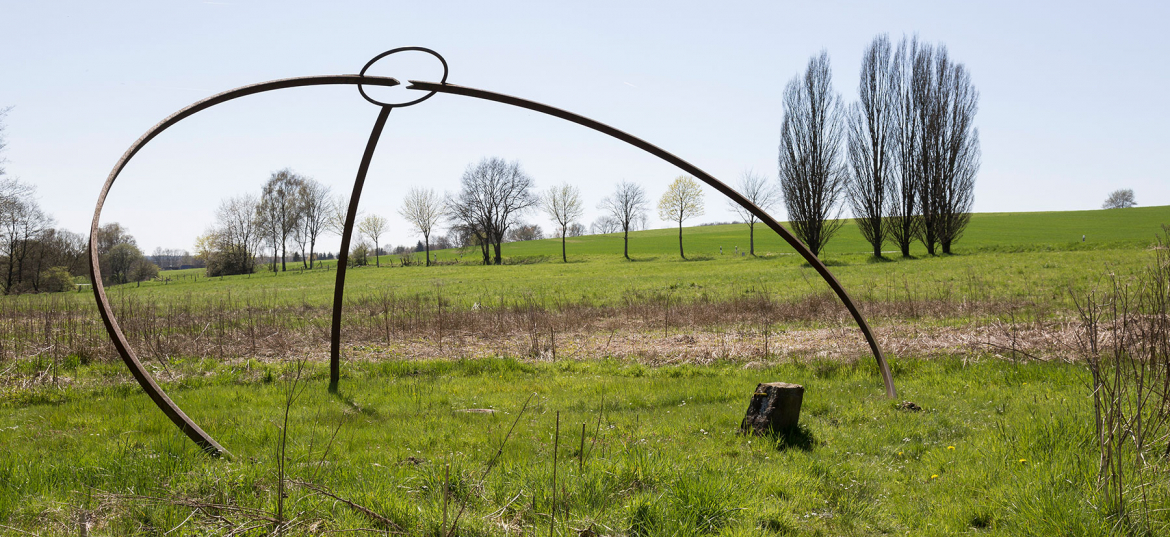 Der Steinkreis im Tal mit einem Durchmesser von ca. 8 m, wird aus zwei Dutzend kleinerer und größerer Steine gebildet, die in der Wiese eingebettet sind. Nur einer von ihnen, der nördlichste, ragt klar aus der Wiesenebene heraus und markiert ein Ende der Meridianlinie des Kunstwerks, die über das Zentrum des Steinkreises weiter nach Süden verläuft. Im Zentrum des Kreises befindet sich ein runder Jura-Stein mit einer kreisförmigen Vertiefung in seiner Mitte, die oft mit Regenwasser gefüllt ist. Aus dem südlichsten Punkt des Steinkreises ragt senkrecht ein Stahlbogensegment empor, an dessen Ende sich ein Stahlring befindet. Der große zweiteilige Stahlbogen steigt im Nordosten des Steinkreises aus der Erdoberfläche heraus und verschwindet wieder im Nordwesten des Kreises im Wiesengrund. Der Stahlbogen ist so berechnet und orientiert, dass er die Sonnenbahn zur Sommersonnenwende wiedergibt, wobei die Bewegung des Schattens, den der Bogen wirft, eine präzise Choreographie nach astronomischen Gesetzmäßigkeiten vollzieht.